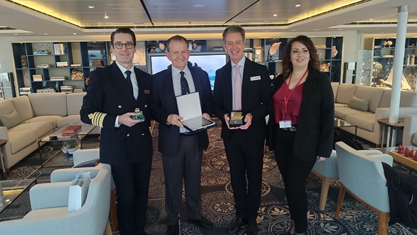 Το πλοίο υποδέχθηκαν ο Διευθύνων Σύμβουλος της ΟΛΒ Α.Ε. κ. Σωκράτης Αναγνώστου, μαζί με την Αντιδήμαρχο Τουρισμού του Δήμου Βόλου κ. Μελπομένη Λαζάρου.