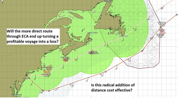Βρισκόμαστε μπροστά σε μια δραστική αλλαγή παραδείγματος όσον αφορά την επιλογή των διαδρομών που διέρχονται από περιοχές ελέγχου των εκπομπών θείου (sulfur emission control areas – SECA). Με τις διαφορές στο κόστος των καυσίμων μεταξύ του IFO και του Ultra Low Sulfur (καύσιμο χαμηλής περιεκτικότητας σε θείο) να είναι της τάξης των 300-400 δολαρίων ανά τόνο, το πλάνο ταξιδίου θα εισέλθει σε μια εντελώς νέα σφαίρα από πρώτης Ιανουαρίου 2015, όταν οι ζώνες ECA θα αποκτήσουν αυστηρότερους κανονισμούς.