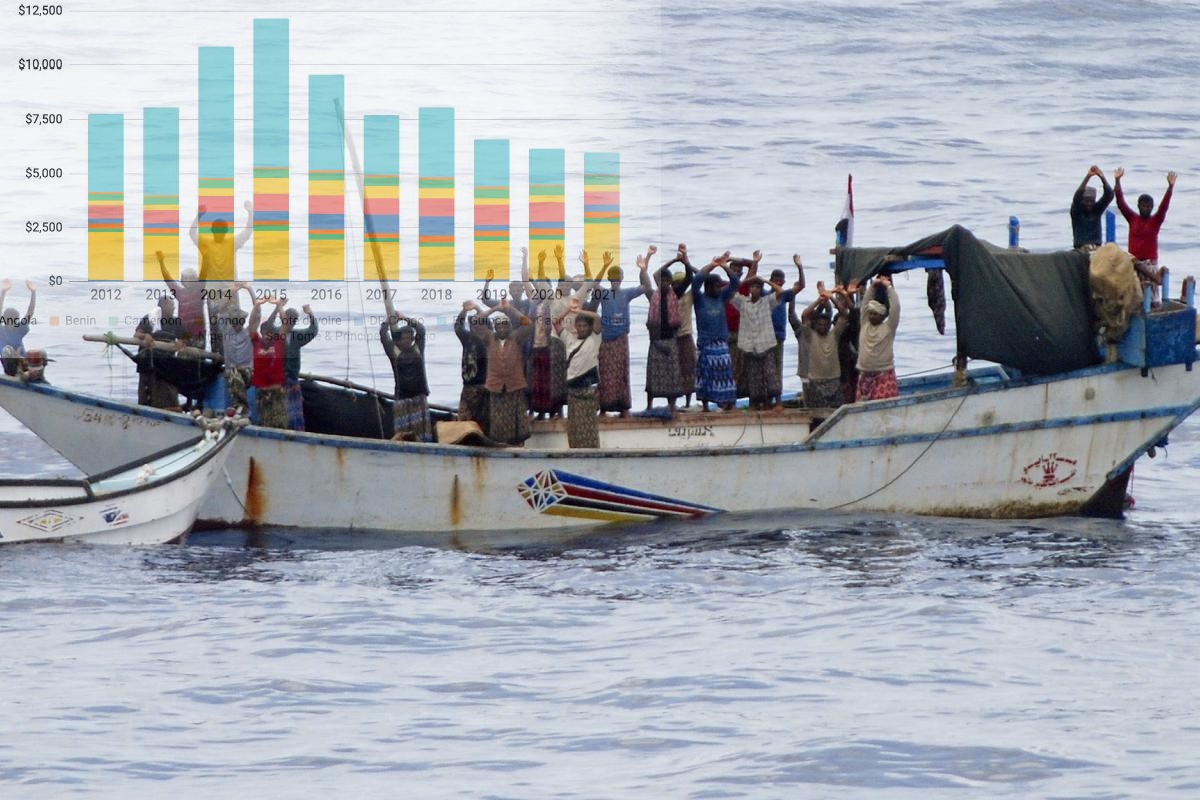 Για κάθε 1 $ που κλέβουν ή εκβιάζουν από τα θύματα της Αφρικής οι πειρατές, οι κυβερνήσεις του Κόλπου της Γουινέας ξοδεύουν περίπου 524 $, στην προσπάθεια της καταπολέμησης της πειρατείας. Αυτά τα έξοδα πραγματοποιούνται καθώς τα έθνη επενδύουν σε πιο ικανά περιπολικά σκάφη, αυξάνουν τις περιπολίες κατά της πειρατείας, δημιουργούν πλατφόρμες ευαισθητοποίησης στον θαλάσσιο τομέα, αναζητούν νομική εκπαίδευση και αναπτύσσουν πολυμερείς μηχανισμούς ανταλλαγής πληροφοριών. Εκτιμούμε ότι οι δαπάνες αυτού του είδους έχουν αυξηθεί κατά περίπου 100 εκατομμύρια δολάρια ετησίως από το 2017.