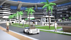 Η εσωτερική δομή της πόλης είναι απίστευτα εντυπωσιακή, με έναν τεράστιο κήπο στον τελευταίο όροφο, beach club και ένα εμπορικό κέντρο. Η Lazzarini ισχυρίζεται ότι η κολοσσιαία κατασκευή μπορεί να φιλοξενήσει 60.000 ανθρώπους, οι οποίοι θα ζουν πλουσιοπάροχα σε 30.000 θέρετρα, παράπλευρα διαμερίσματα και χιλιάδες σύγχρονες βίλες.