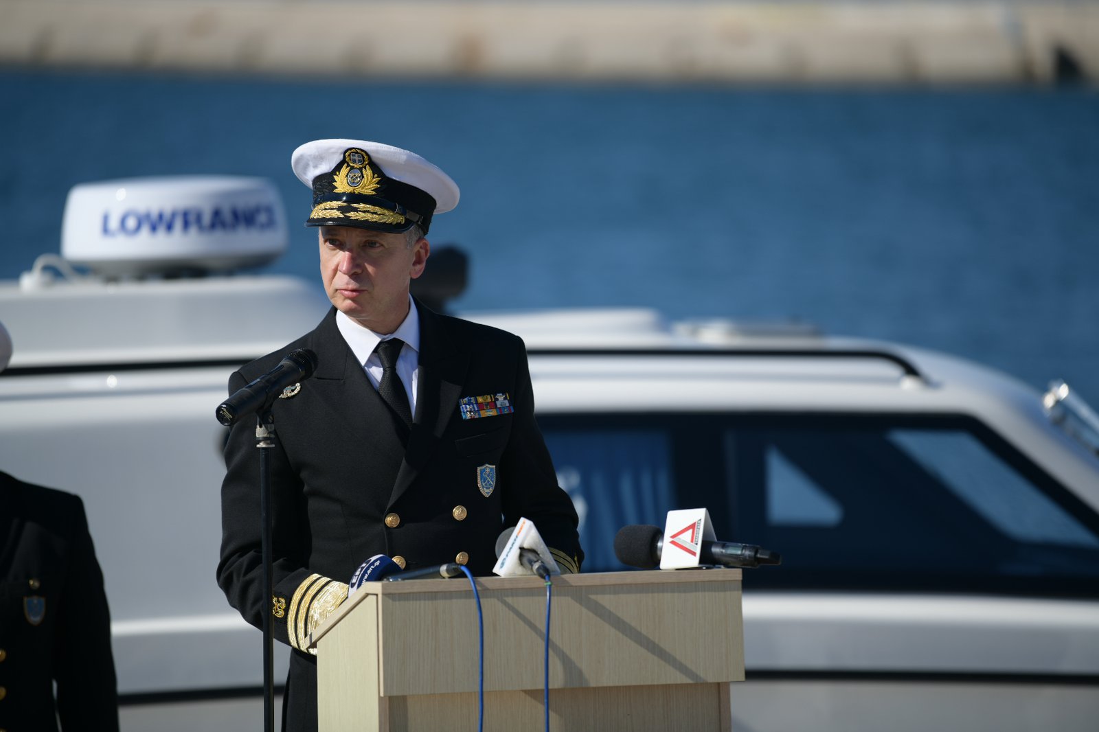 « Με περηφάνια μπορώ να πω ότι σήμερα ολοκληρώνεται ο κύκλος ένταξης 8 συνολικά περιπολικών σκαφών με υγειονομικό εξοπλισμό στα επιχειρησιακά μέσα του Σώματος. Το έργο του Λιμενικού Σώματος είναι από της ιδρύσεώς του πολυσχιδές και πολυεπίπεδο, αλλά οι σημερινές συνθήκες υπό τις οποίες λειτουργούν τα στελέχη μας είναι ιδιαίτερα πιεστικές. Θέλω να γνωρίζετε ότι την τελευταία μόνο δεκαετία, έγιναν περισσότερες από 8.000 επιτυχημένες διακομιδές ασθενών από νησιωτικές περιοχές με πλωτά μέσα του Λιμενικού και ιδιωτικά σκάφη και υπό τον συντονισμό πάντα του Κέντρου Επιχειρήσεων του Σώματος.»