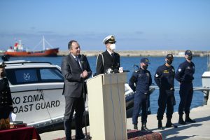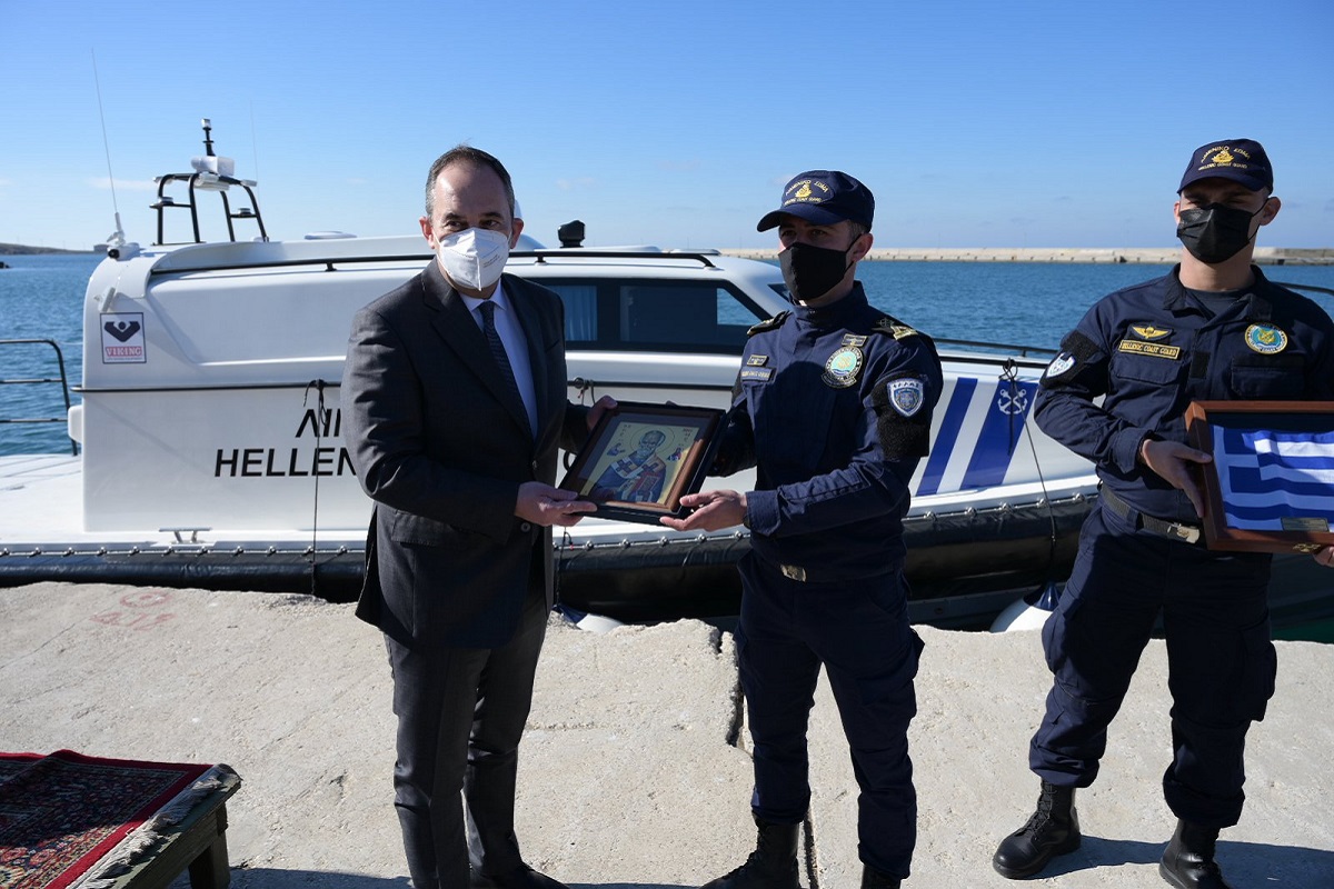 «Οι επιχειρησιακές δυνατότητες του Λιμενικού Σώματος στην περιοχή ενισχύονται σημαντικά, με το σύγχρονο αυτό περιπολικό σκάφος, ενώ παράλληλα, ενισχύεται και το αίσθημα ασφάλειας των κατοίκων του νησιού αλλά και των επισκεπτών, αφού το σκάφος διαθέτει σύγχρονο υγειονομικό εξοπλισμό και μπορεί να μεταφέρει με ασφάλεια οποιοδήποτε περιστατικό», τόνισε σε σύντομη ομιλία του ο κ. Πλακιωτάκης. Ο Υπουργός Ναυτιλίας και Νησιωτικής Πολιτικής εξήρε για μία ακόμη φορά το συνολικό και πολύπλευρο έργο των ανδρών και των γυναικών του Λιμενικού Σώματος – Ελληνικής Ακτοφυλακής που «επιχειρούν με θάρρος, αποφασιστικότητα και τόλμη, με σεβασμό στους κανόνες του Διεθνούς Δικαίου και με απόλυτη προτεραιότητα στην ανθρώπινη ζωή και προστατεύουν αποτελεσματικά τα θαλάσσια σύνορα της πατρίδας μας, τα θαλάσσια σύνορα της Ευρώπης».