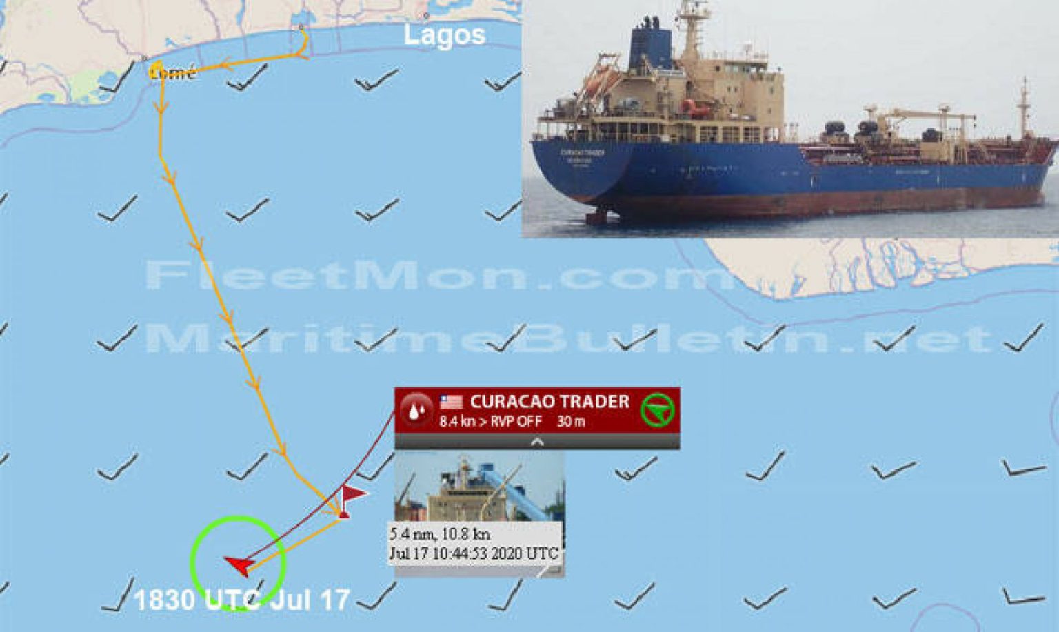 Πειρατική επίθεση δέχθηκε χθες το ελληνικών συμφερόντων δεξαμενόπλοιο-chemical/bunkering Curacao Trader, IMO No:9340908 ενώ βρισκόταν στον κόλπο της Γουινέας 210 μίλια από τις ακτές του Μπενίν, στη δυτική Αφρική.