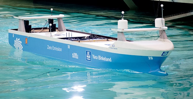 Οι νορβηγικές εταιρείες Yara και Kongsberg φιλοδοξούν, όπως ανακοίνωσαν στις 9 Μαΐου 2017, να κατασκευάσουν το πρώτο αυτόνομο και πλήρως ηλεκτρικό πλοίο μεταφοράς container “Yara Birkeland” Ένα μοντέλο μήκους έξι μέτρων και βάρους 2,4 τόνων του τελικού σχεδιασμού αποκαλύφθηκε, καθώς ξεκίνησαν οι δοκιμές του στην 80 μέτρων δεξαμενή δοκιμών του SINTEF Ocean στο Trondheim της Νορβηγίας, στις 28 Σεπτεμβρίου 2017. Επίσης αποκαλύφθηκε χθες ότι η ENOVA, μια νορβηγική κρατική επιχείρηση υπεύθυνη για την προώθηση φιλικής προς το περιβάλλον παραγωγής και κατανάλωσης ενέργειας θα υποστηρίξει το έργο συνεισφέροντας το ποσό των 133 εκατ. NOK.