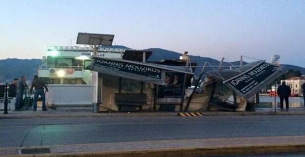 Ένα πλοίο της γραμμής που συνδέει τη Μυτιλήνη με τα απέναντι τουρκικά παράλια, έδεσε χτες το πρωι… πάνω στην στάση των ΚΤΕΛ, απέναντι από την Πλατεία Σαπφους στην προκυμαία Μυτιλήνης, με αποτέλεσμα να καταστραφεί.