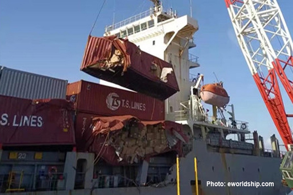 Το πλοίο μεταφοράς εμπορευματοκιβωτίων TS MOJI απέπλευσε από την Σαγκάη με προορισμό την Yokohama της Ιαπωνίας όταν έπεσε σε τυφώνα με αποτέλεσμα να προκληθούν αρκετές ζημιές στα εμπορευματοκιβώτια που μετέφερε.