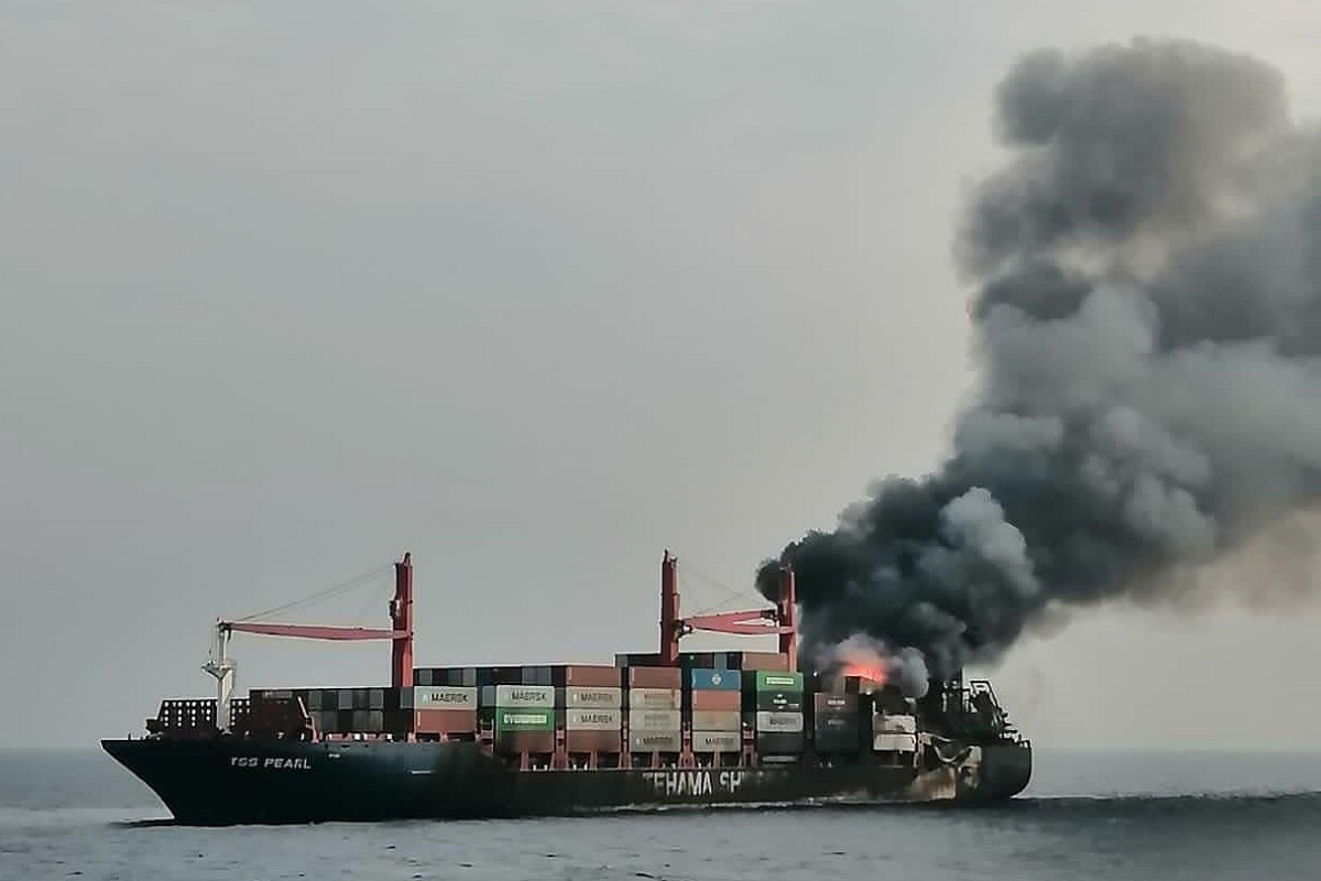 Το πλοίο μεταφοράς εμπορευματοκιβωτίων TSS PEARL βρισκόταν εν πλω από την Τζέντα προς το Άντεν με ETA στις 7 Οκτωβρίου όταν ξέσπασε η πυρκαγιά εχθές 6 Οκτωβρίου από άγνωστους μέχρι στιγμή λόγους, με το πιθανότερο σενάριο να είναι να ξεκίνησε σε κάποια εμπορευματοκιβώτια που μετέφερε.