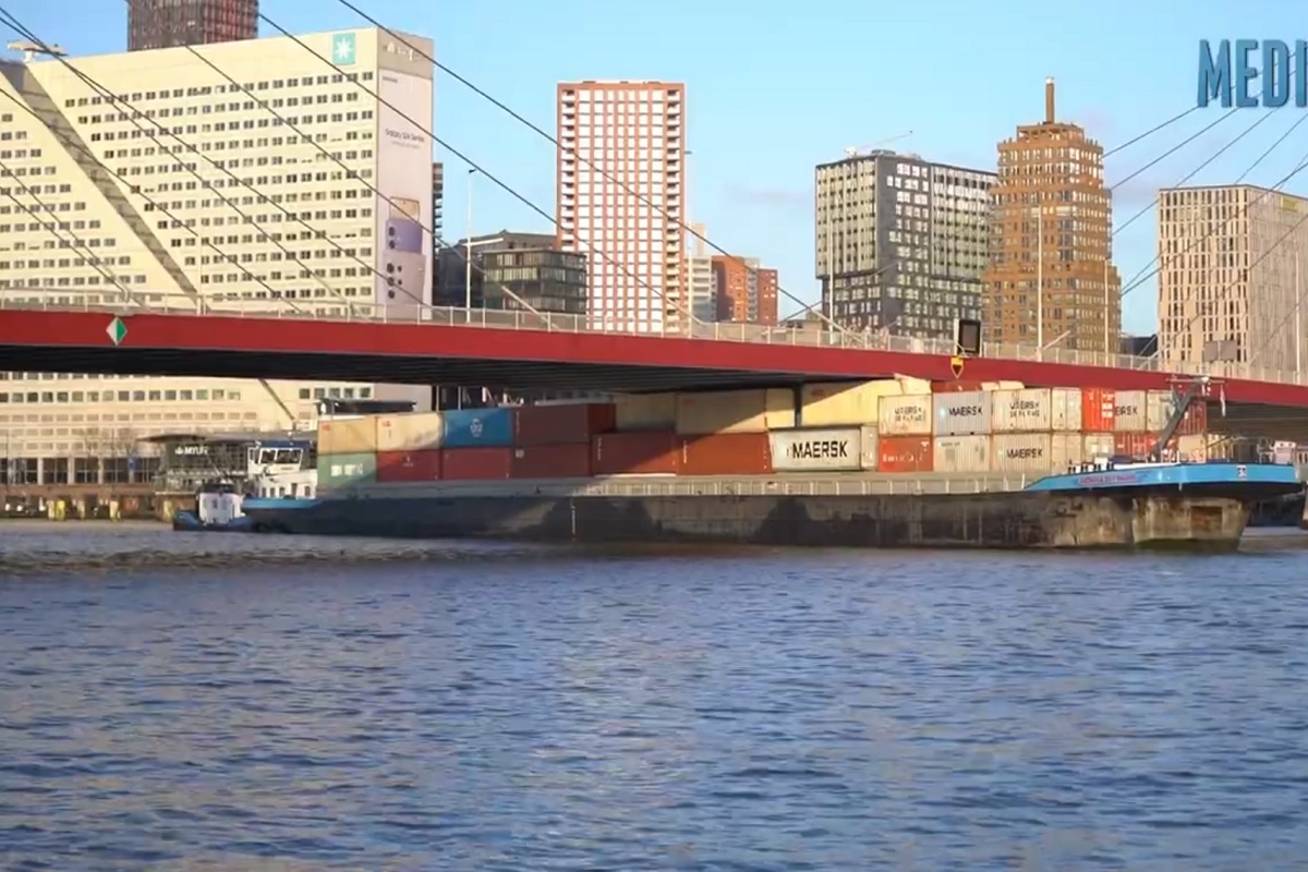 Ένα δυνατός θόρυβος ξεσήκωσε τους κατοίκους όταν ένα γερμανικό πλοίο μεταφοράς εμπορευματοκιβωτίων δεν εκτίμησε σωστά το ύψος της μιας γέφυρας στο Ρότερνταμ. Το πλοίο προσέκρουσε και σφήνωσε κάτω από τη γέφυρα Willemsbrug που διασχίζει το Nieuwe Maas έχοντας σαν αποτέλεσμα να χάσει τουλάχιστον δύο κοντέινερ τις πρωινές ώρες της Παρασκευής.