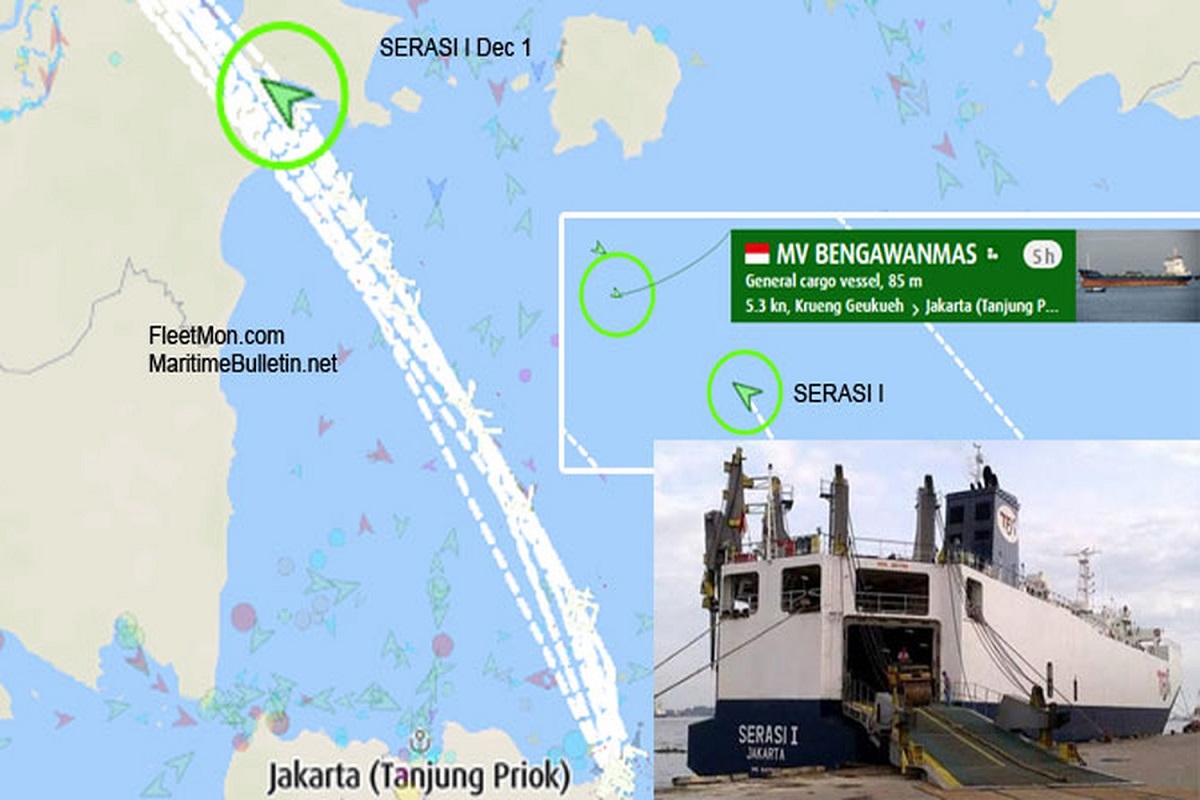 Το πλοίο μεταφοράς οχημάτων SERASI I συγκρούστηκε με το φορτηγό πλοίο μεταφοράς γενικού φορτίου BATANGHARI MAS σήμερα περίπου στις 0200 τοπική ώρα στο στενό Bangka, στα νησιά Bangka Belitung.