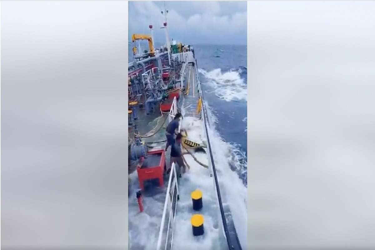 6. Ακόμη και όταν τα κύματα μπαίνουν «ζωντανά» στο πλοίο ο πλοίαρχος συνεχίζει να επιτρέπει σε αυτά τα δυο μέλη του πληρώματος να βρίσκονται στο κατάστρωμα.