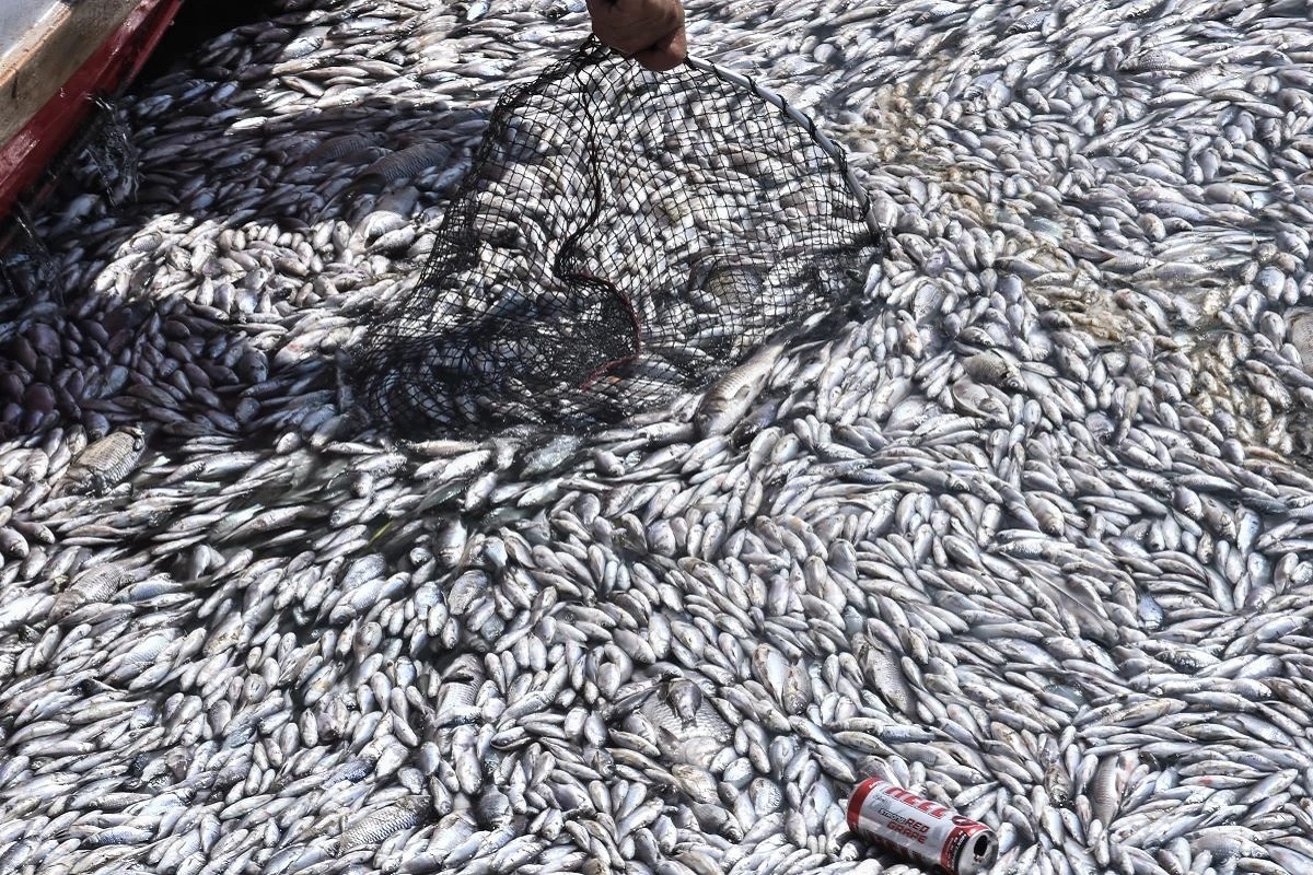 Τα νεκρά ψάρια βρίσκονται παντού και έχουν διαχυθεί στον κόλπο. Τα αλιευτικά σκάφη βρίσκονται σε συνεχή κίνηση, ώστε να συγκεντρωθούν οι τεράστιες ποσότητες μέχρι τα μέσα της επόμενης εβδομάδας.