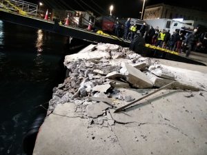 Προσέκρουσε, βραδινές ώρες χθες, κατά τη διαδικασία χειρισμών πρόσδεσης το Ε/Γ-Ο/Γ ”Ν. ΣΑΜΟΣ” Ν.Π. 12396 στον προβλήτα λιμένα ν. Χίου προκαλώντας υλικές ζημίες σε μεγάλο τμήμα του εν λόγω κρηπιδώματος, με 299 επιβάτες, 72 Φορτηγά , 46 Ι.Χ. και 18 Δ/Κ εκτελώντας το προγραμματισμένο δρομολόγιο από Μυτιλήνη για Χίο – Ψαρά – Πειραιά.
