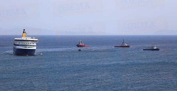 Για το λόγο αυτό τα τρία ρυμουλκά που έχουν προσεγγίσει το πλοίο παραμένουν απλά σε επιφυλακή.