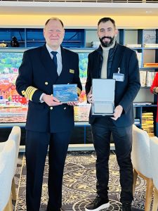 Όλοι οι παρευρισκόμενοι ξεναγήθηκαν στο κρουαζιερόπλοιο και ακολούθησε η εθιμοτυπική διαδικασία ανταλλαγής πλακετών και δώρων μεταξύ του αντιδημάρχου Τουρισμού και Πολιτισμού Γεωργίου Τόππου και του κυβερνήτη του πλοίου Captain Anders Steen, καθώς και του προέδρου του Λιμενικού Ταμείου Νότιας Δωδεκανήσου Βασίλη Βαγιανάκη με τον κυβερνήτη.