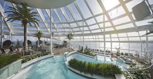 Στο εσωτερικό του τα πάντα θυμίζουν ταινία επιστημονικής φαντασίας, ρομπότ που σερβίρουν, εξομοιωτής αλεξίπτωτου ελεύθερης πτώσης, το πρώτο ψηφιακό σύστημα ψυχαγωγίας στον κόσμο, συγκρουόμενα, εικονικά μπαλκόνια, δωμάτια χωρίς παράθυρα και βιονικά μπαρ (Οι επιβαίνoντες μπορούν να παραγγέλνουν ποτά μέσω tablet και ύστερα να παρακολουθούν καθώς οι μπάρμαν-ρομπότ φτιάχνουν το ποτό που επιθυμούν!)