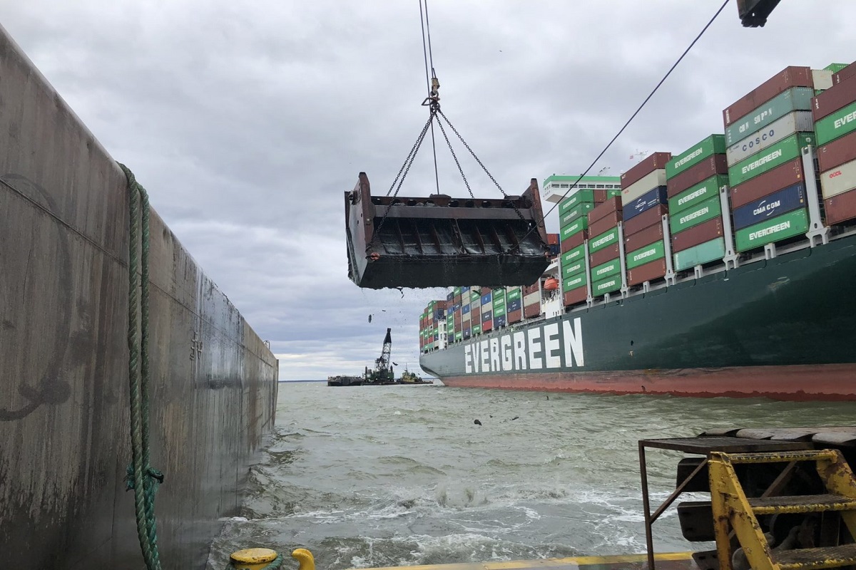 Το AIS δείχνει δύο πλοία βυθοκόρους στο σημείο που έχει προσαράξει το Ever Forward, το Donjon’s Oyster Bay και το Cashman’s Dale Pyatt. Ο Doyle σημειώνει ότι το Dale Pyatt είναι το μεγαλύτερο πλοίο βυθοκόρησης στο δυτικό ημισφαίριο, εξοπλισμένο με χούφτα 21,4 κυβικών μέτρων. Το Oyster Bay της Donjon Marine Co. είναι εξοπλισμένο με χούφτα 11.4 κυβικών μέτρων.