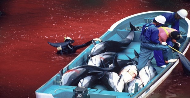 Κάθε χρόνο οι ψαράδες του Ταϊτζί, στη νομαρχία Ουακαγιάμα της δυτικής Ιαπωνίας, οδηγούν εκατοντάδες δελφίνια σε ένα μικρό κόλπο, επιλέγουν μερικά για να τα πουλήσουν σε θαλάσσια πάρκα, απελευθερώνουν άλλα και σκοτώνουν τα υπόλοιπα για το κρέας τους.