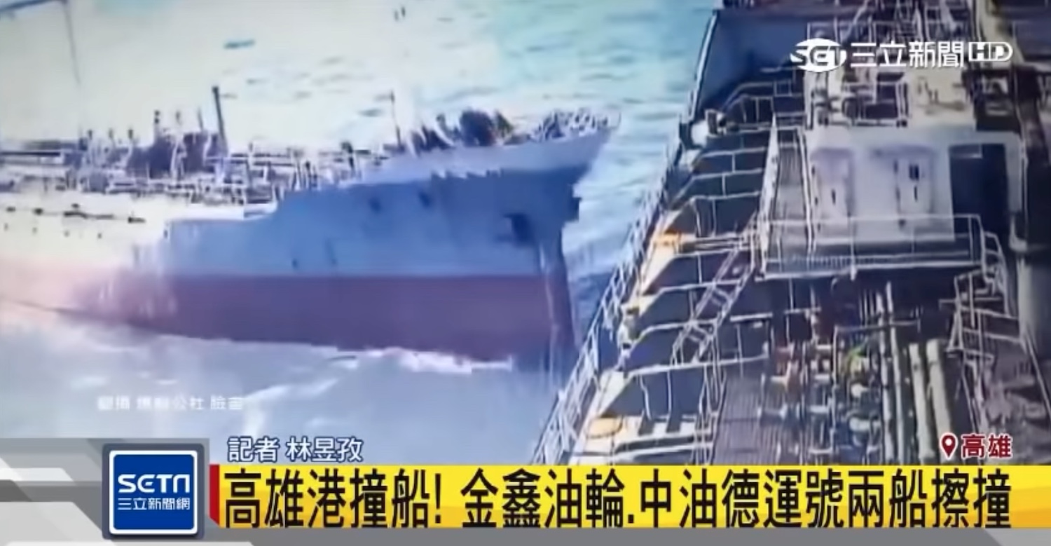 Δύο δεξαμενόπλοια και ένα πλοίο μεταφοράς εμπορευματοκιβωτίων συνεπλάκησαν σε σύγκρουση στο λιμάνι του Kaoshiung στην Ταιβάν το Σαββάτο.