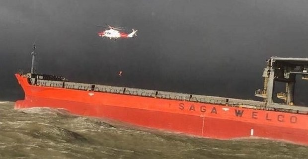 Την ώρα του περιστατικού, η καταιγίδα Άνγκους σάρωνε τις νότιες ακτές της Αγγλίας. Το καταχωρημένο στο Χονγκ Κονγκ Saga Sky (μήκους 200 μέτρων) βρίσκεται αυτήν τη στιγμή σε ασφαλές αγκυροβόλιο στο Ντάντζνες, ενώ 12 από τα 23 μέλη του πληρώματος παρέμειναν στο πλοίο για να βοηθήσουν στη μεταφορά του σε ασφαλή τοποθεσία.