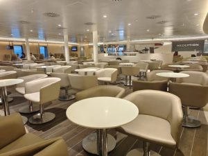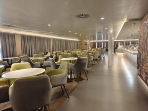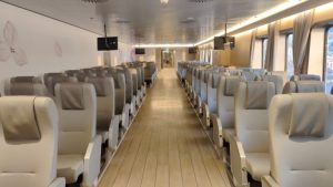 Με την είσοδο σας στο επιβατικό πλοίο, η πρώτη εικόνα θα σας μαγέψει και θα σας αφήσει άφωνους γι αυτό που θα συναντήσετε, ένα πραγματικό πλωτό παλάτι, το οποίο βρίσκετε στην επιδοτούμενη γραμμή των Κυκλάδων, με πολλά σαλόνια, άνετα ατομικά καθίσματα και μοναδικοί χώροι που εκτός της διακεκριμένη θέση, μπορείτε να γνωρίσετε τις Θέσεις Business και το σαλόνι VIP, καθώς και οι μικροί μας φίλοι το παιδότοπο.