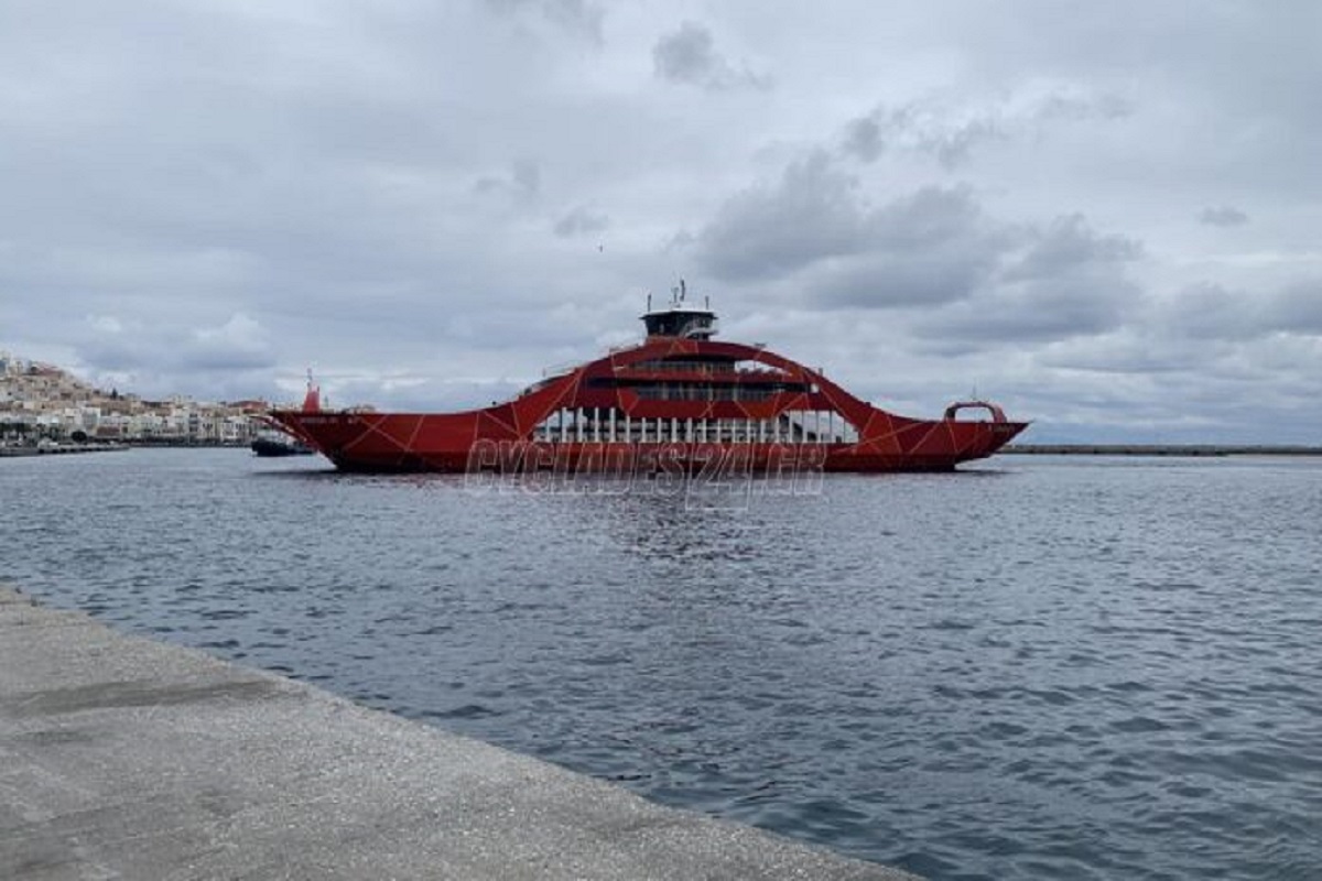 Ένα ιδιαίτερο και εντυπωσιακό πλοίο με φανταχτερά χρώματα έκανε την εμφάνιση σου σήμερα το μεσημέρι στο λιμάνι της Ερμούπολης.