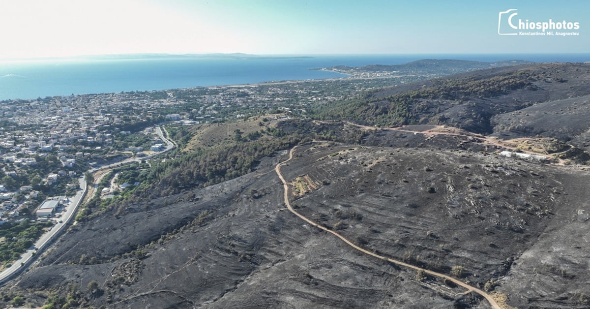 Συγκλονιστικές εικόνες καταστροφής της Χίου από ψηλά μετά την καταστροφική πυρκαγιά που έπληξε το νησί για 3 συνεχόμενες ημέρες.