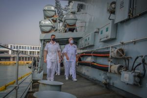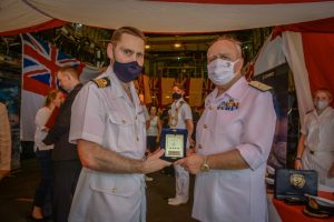 Στο πλαίσιο της παραμονής της Φρεγάτας του H.B. στο λιμένα Πειραιώς, όπου κατέπλευσε την Παρασκευή 18 Ιουνίου 2021, ο Κυβερνήτης της «HMS KENT», Commander Matt J. Sykes επισκέφθηκε την Ναυτική Διοίκηση Αιγαίου, όπου τον υποδέχθηκε ο Διοικητής Αρχιπλοίαρχος Σ. Δημόπουλος ΠΝ.