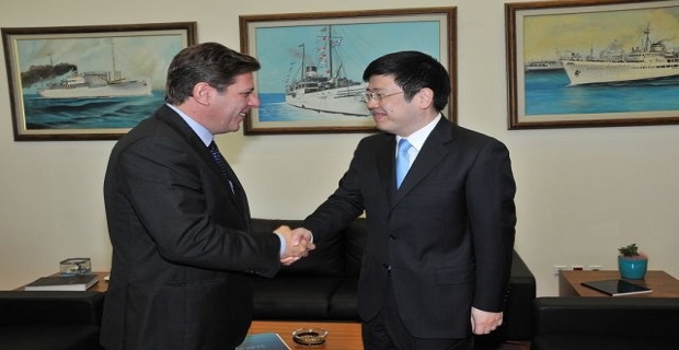 Με τον Πρέσβη της Λαϊκής Δημοκρατίας της Κίνας, ZouXiaoli(ΖουΞιαολί), συναντήθηκε σήμερα ο Υπουργός Ναυτιλίας και Αιγαίου, Μιλτιάδης Βαρβιτσιώτης. Σκοπός της συνάντησης, η οποία πραγματοποιήθηκε σε εξαιρετικό κλίμα, ήταν η συζήτηση για ναυτιλιακά θέματα, καθώς η ενδυνάμωση της συνεργασίας των δύο πλευρών στον τομέα των επενδύσεων.