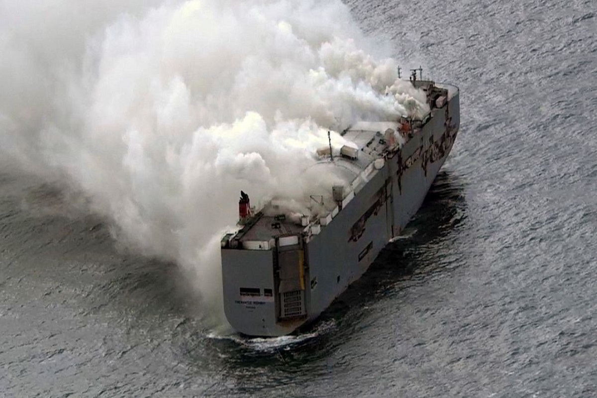 Συνεχίζει να καίγεται το πλοίο με τις 3,000 BMW και μερσεντές – Σχέδιο για την ρυμούλκηση του