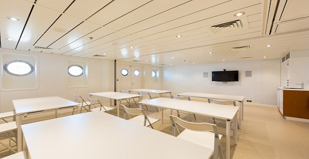 Μένοντας πιστά στο όνειρο του ιδιοκτήτη για μια πλωτή εκπαιδευτική εγκατάσταση, το Yersin συμμορφώνεται με τις αξίες του Yacht Club του Μόνακο “La Belle Classe Superyachts”, το οποίο στοχεύει στην προστασία του περιβάλλοντος με την προώθηση της χρήσης καινοτόμου τεχνολογίας. Τα δωμάτια πολλαπλών χρήσεων απλώνονται σε όλο το πλοίο, όπου μπορούν να πραγματοποιηθούν παρουσιάσεις και επιστημονικά μαθήματα.