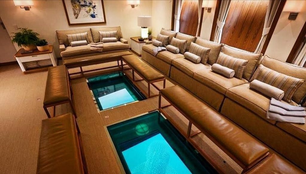Οι εγκαταστάσεις στο γιοτ περιλαμβάνουν σπα, γυμναστήριο, αίθουσα γιόγκα και τζακούζι στο κατάστρωμα, αν και δεν υπάρχει πισίνα. Υπάρχει επίσης μια αίθουσα ταινιών τελευταίας τεχνολογίας με ενημερωμένο σύστημα ψυχαγωγίας. Αναμφισβήτητα το πιο ενδιαφέρον χαρακτηριστικό είναι μια αίθουσα πολυμέσων με γυάλινο πάτο, όπου οι επισκέπτες μπορούν να δουν τον υπέροχο υποβρύχιο κόσμο χωρίς να χρειάζεται να εγκαταλείψουν την άνεση του γιοτ. Αυτό είναι ιδιαίτερα δημοφιλές σε ψυχρότερα κλίματα, όταν η κολύμβηση ή η κατάδυσημπορεί να μην είναι δυνατή. Για να ενισχύσει περαιτέρω την εμπειρία, το SURI διαθέτει έναν λεγόμενο σωλήνα τροφοδοσίας που επιτρέπει τη μεταφορά ψαροτροφών κάτω από το γιοτ, έτσι ώστε να υπάρχει πάντα κάτι να δει κανείς κάτω από το νερό, ακόμη και σε ήρεμες μέρες.
