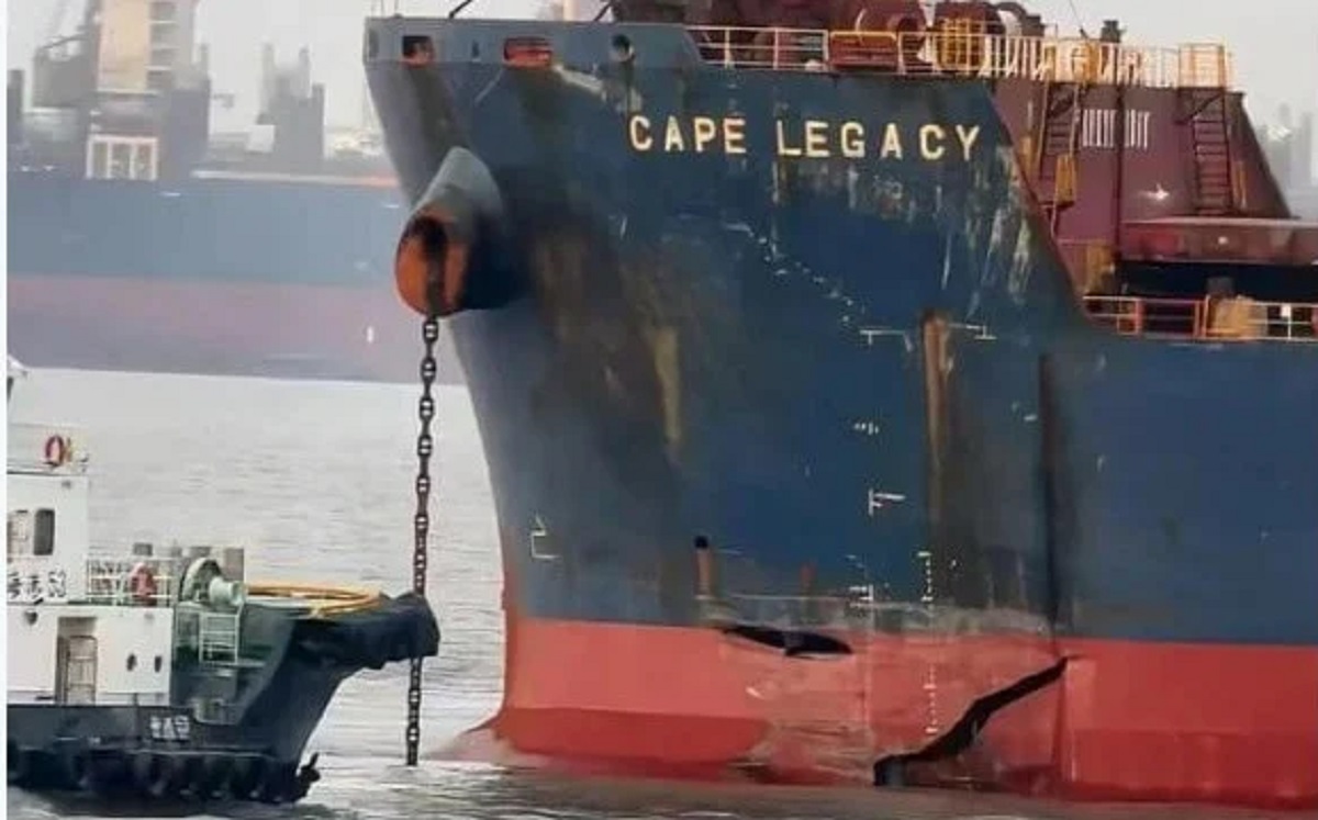 Οι φωτογραφίες δείχνουν το Cape Legacy, το οποίο ανήκει στην Ισραηλινή Mano Maritime με δύο τρύπες στο κύτος καθώς και πολλές γρατζουνιές. Πληροφορίες ανέφεραν ότι κανείς δεν τραυματίστηκε και το πλήρωμα μπόρεσε να ελέγξει το πλοίο. Σύμφωνα με πληροφορίες, μεταφέρει φορτίο σιδηρομεταλλεύματος.