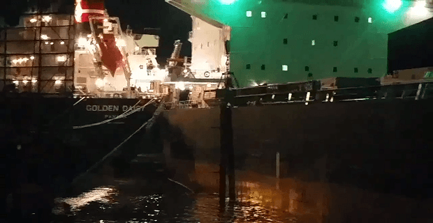 Στο βίντεο που ακολουθεί, θα παρακολουθήσετε ελαφρά σύγκρουση μεταξύ των πλοίων «MV Triton» και το «MV Golden Daisy», λόγω παλίρροιας…. Τα πλοία βρίσκονται στο λιμάνι Buenaventura της Κολομβίας και το ατύχημα συνέβη στις 12 Ιουλίου 2014.