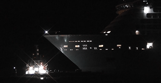 Δείτε το «Quantum of the Seas» να διασχίζει τον ποταμό EMS κατά την διάρκεια της νύχτας.
