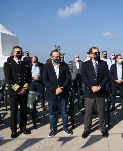 Πραγματοποιήθηκε χθες στην Αίγινα η τελετή ένταξης περιπολικού σκάφους κατάλληλα διαμορφωμένου με υγειονομικό εξοπλισμό (Λ.Σ. 1068) στον στόλο του Λιμενικού Σώματος – Ελληνικής Ακτοφυλακής με έδρα το Λιμεναρχείο Αίγινας, παρουσία του Υφυπουργού Ναυτιλίας και Νησιωτικής Πολιτικής κ. Κώστα Κατσαφάδου και του Αρχηγού του Λιμενικού Σώματος – Ελληνικής Ακτοφυλακής Αντιναυάρχου Λ.Σ. Κλιάρη Θεόδωρου.