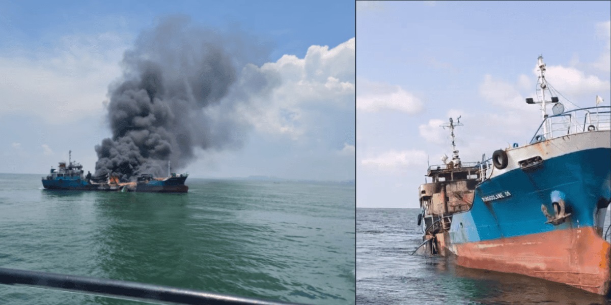 Η έκρηξη σημειώθηκε γύρω στις 6:00 π.μ., και είχε σαν αποτέλεσμα να ξεσπάσει πυρκαγιά στο Ronggolawe 09 και να εξαπλωθεί και στο Rosalyn 08. Όλα τα μέλη του πληρώματος και από τα δύο πλοία πήδηξαν για να γλιτώσουν από την φωτιά, ενώ το Ronggolawe 09 παρασυρόταν ακυβέρνητο και τυλιγμένο στις φλόγες.