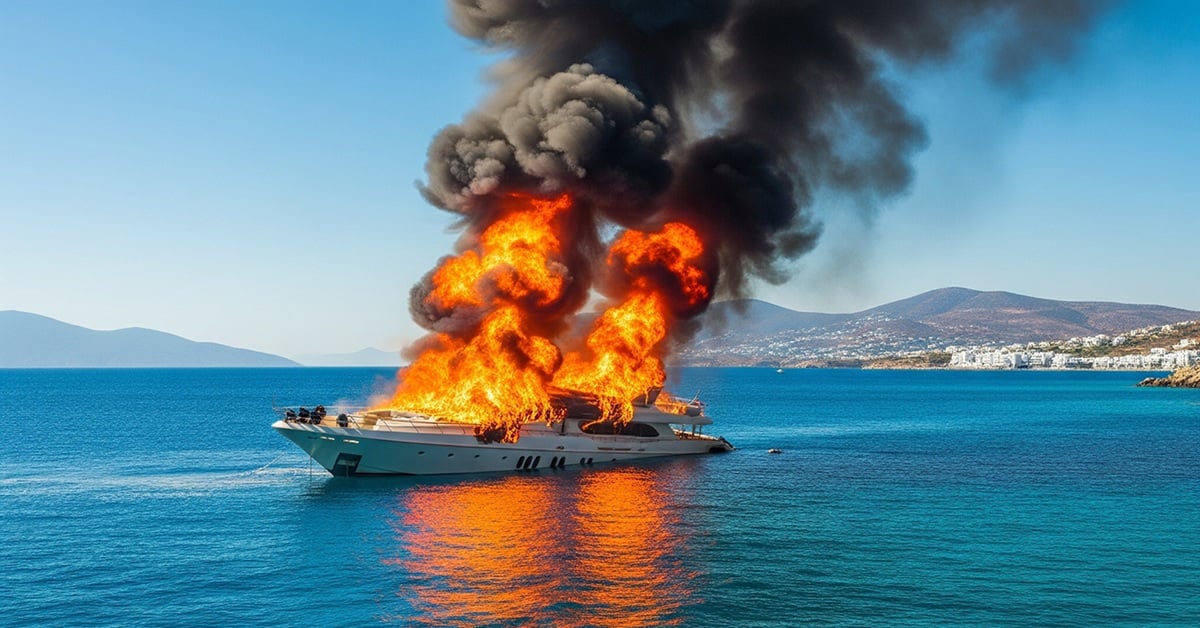 Θαλαμηγός τυλίχθηκε στις φλόγες στο Πόρτο Χέλι Αργολίδας