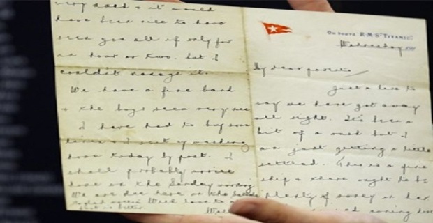 Η επιστολή που συντάχθηκε όσο ο Τιτανικός βρισκόταν εν πλω, με ημερομηνία 14 Απριλίου 1912, ημέρα που το πλοίο έπεσε πάνω στο παγόβουνο πρόκειται να δημοπρατηθεί σε λίγες ημέρες στη Βρετανία. Η Έστερ Χαρτ που επέζησε του ναυαγίου, έγραψε μία επιστολή στη μητέρα της στο Τσάντγουελ Χιθ του ανατολικού Λονδίνου το πρωί πριν από το ναυάγιο. Το γράμμα, ωστόσο, δεν εστάλη ποτέ.