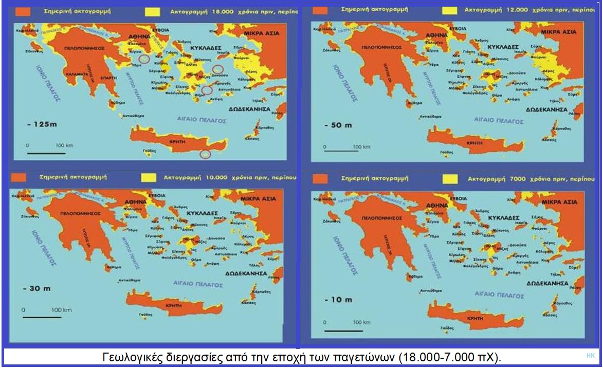 Οι γεωλογικές διεργασίες στη γη συνεχίστηκαν στην πορεία του χρόνου, η στάθμη της θάλασσας ανέβηκε και έτσι σχηματίστηκαν τα νησιά που βλέπουμε σήμερα.