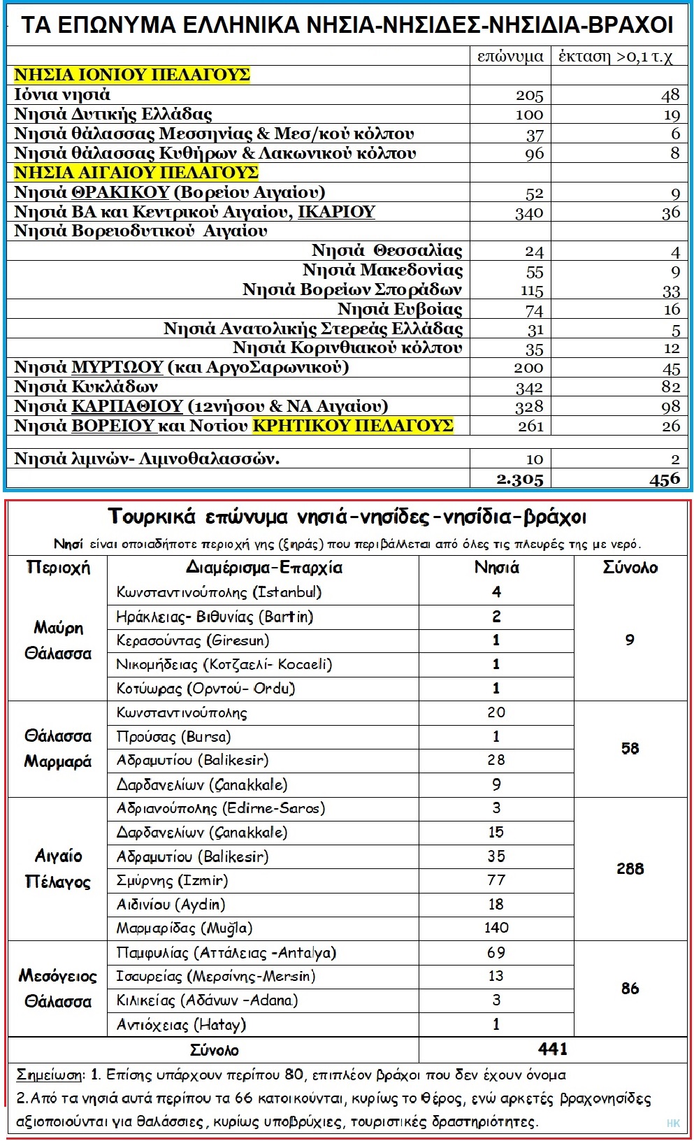 Μόνο συγκρίνοντας τους αριθμούς των δικών μας νησιών με τα νησιά των γειτονικών μας κρατών μπορούμε να κατανοήσουμε γιατί όλοι οι χαρτογράφοι της αρχαιότητας από τη Βυζαντινή περίοδο, χαρακτήριζαν το Αιγαίο πέλαγος σαν «Αρχιπέλαγος του Αιγαίου».