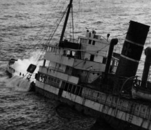 «Το πλοίο είχε γείρει απελπιστικά σχεδόν βυθιζόταν. Ήταν από κάτω κόκκινο, θυμάμαι, από το φως των δαιμονισμένων αφρών… Πλάι μας, μέσα στα νερά, δύο γυναίκες θαρρώ πνιγμένες, χτυπιόνταν στους βράχους και στο τοίχωμα του πλοίου η μια είχε την τσάντα της ανοιχτή στον ώμο της… κρεμασμένη. Κι άλλοι δυο, παρέκει… δεν ξέρω αν σώθηκαν…»