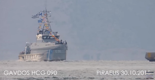Το νέο περιπολικό ανοιχτής θαλάσσης του Λιμενικού Σώματος, ΓΑΥΔΟΣ (ΛΣ 090) κατέπλευσε για πρώτη φορά στο λιμάνι του Πειραιά. Kατασκευάστηκε φέτος στα Damen Shipyards της Ολλανδίας.Ο τύπος του είναι “Stan Patrol 5509”.