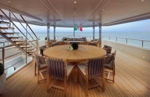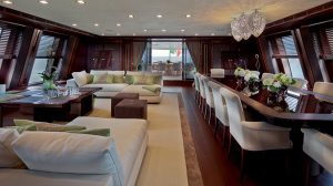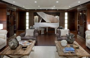 Μάλιστα, το σκάφος μπορεί να φιλοξενήσει άνετα δέκα άτομα σε τέσσερις καμπίνες και στην σουίτα του ιδιοκτήτη, καθώς και 13 μέλη του πληρώματος.