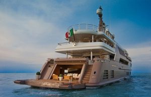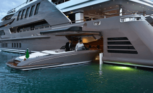 Η αλήθεια είναι το σκάφος μπορεί να φιλοξενήσει, μεταξύ άλλων, στο εσωτερικό του ένα ταχύπλοο μήκους οκτώ μέτρων, με απόλυτη άνεση, ενώ όταν το «γκαράζ» του είναι άδειο μπορεί να μετατραπεί σε μια ιδιωτική, φυσική πισίνα!