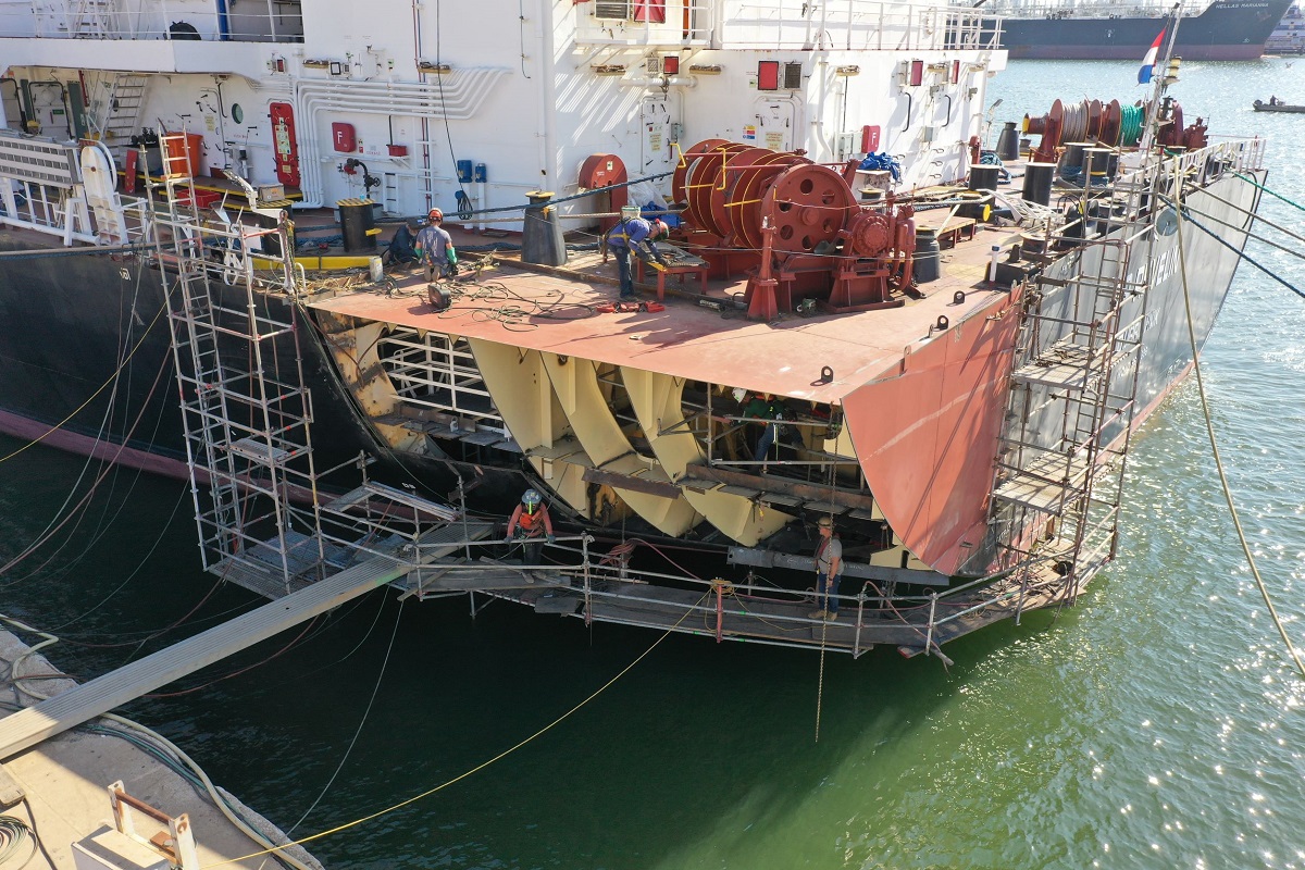 Φωτογραφίες: Φορτηγό πλοίο που έχει υποστεί σοβαρές ζημιές μετά την σύγκρουση με άλλο πλοίο επισκευάστηκε σε μόλις 35 ημέρες!