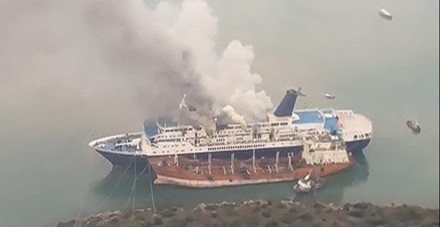 Δείτε το βίντεο με την πυρκαγιά στο κρουαζιερόπλοιο Ocean Countess, με σημαία Πορτογαλίας, στα ναυπηγεία Χαλκίδας