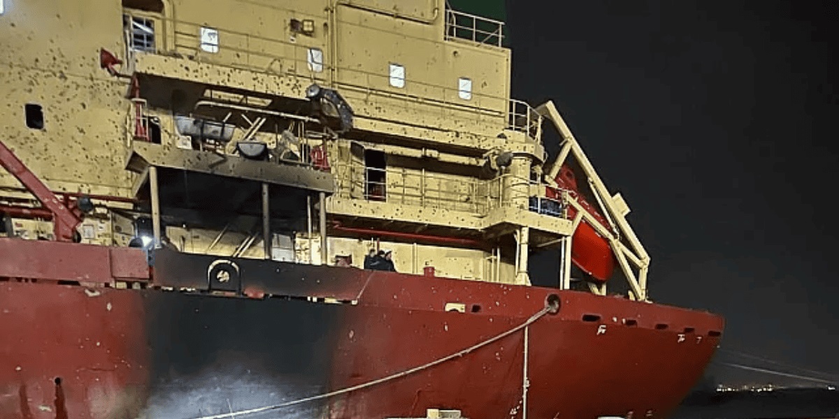 Το MJ Pinar, ένα πλοίο μεταφοράς χύδην φορτίου με σημαία Μπαρμπάντος, είχε 12 μέλη πληρώματος και φόρτωνε 30.000 τόνους σιταριού για εξαγωγή όταν σημειώθηκε η επίθεση.