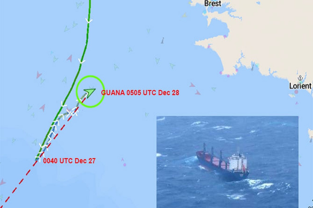 Πυρκαγιά ξέσπασε στο μηχανοστάσιο του φορτηγού πλοίου μεταφοράς γενικού φορτίου GUANA στις 26 Δεκεμβρίου περίπου 23:00 UTC, και εν αυτό βρισκόταν εν πλω στον Βισκαϊκό Κόλπο υπό αντίξοες καιρικές συνθήκες.
