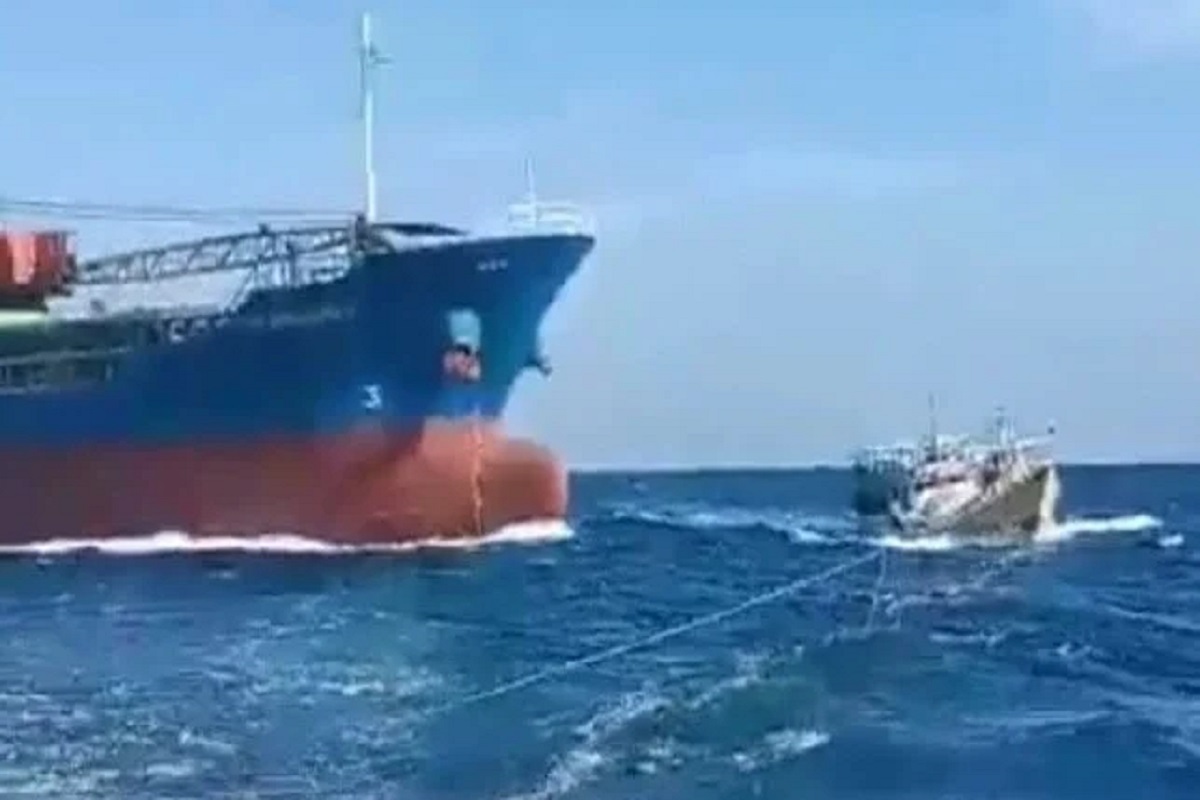 Το βίντεο το οποίο αναρτήθηκε στο Διαδίκτυο δείχνει τη στιγμή που ένα ινδονησιακό φορτηγό πλοίο εμβόλισε ένα αλιευτικό σκάφος που βρισκόταν ακριβώς πάνω στην πορεία του.