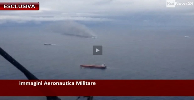 Βίντεο το οποίο μετέδωσε η Ιταλική τηλεόραση RΑΙ, μας δείχνει από ψηλά την επιχείρηση διάσωσης που βρίσκεται σε εξέλιξη.